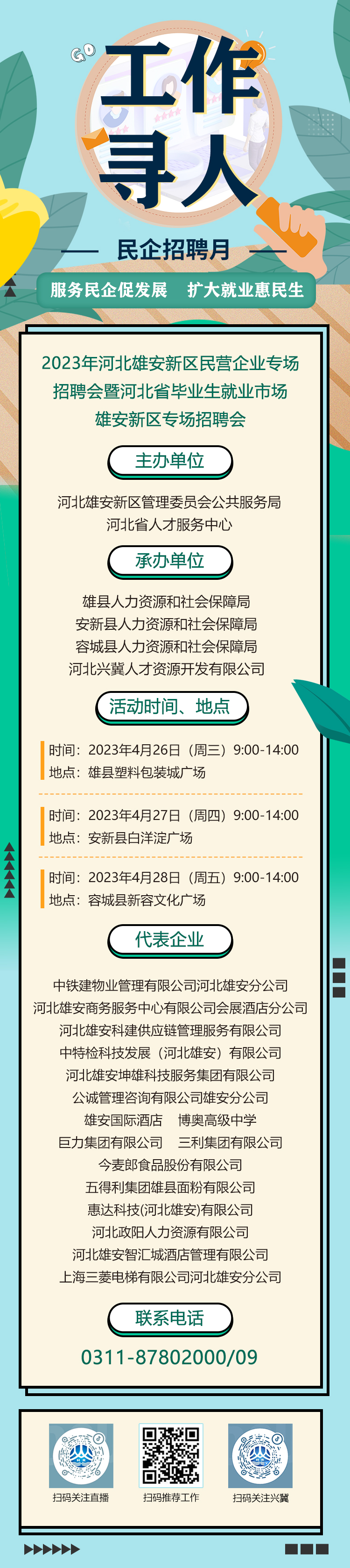 >> 2023年河北雄安新區民營企業專場招聘會暨河北省畢業生就業市場雄安新區專場招聘會