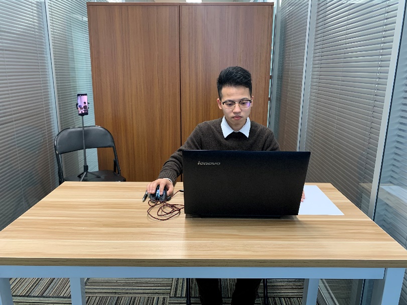 (4)考試開始前,考生需要先登錄移動端“智考通”,用前置攝像頭360度環繞拍攝考試環境,隨后將移動設備固定在能夠拍攝到考生全身(含側面)、考試桌面、完整的考試設備(電腦屏幕和鍵盤等)、考生雙手動作(考生行為)及考生周圍環境的位置上繼續拍攝考試全程(詳見說明書中《智考通操作手冊》《智考云在線考試規范》)。請考生注意,視頻拍攝角度不得存在盲區,不得無故中斷視頻錄制,考試視頻數據不得缺失,不得出現影響考務人員判斷本場考試有效性等情況,否則將影響成績的有效性,由考生自行承擔后果。