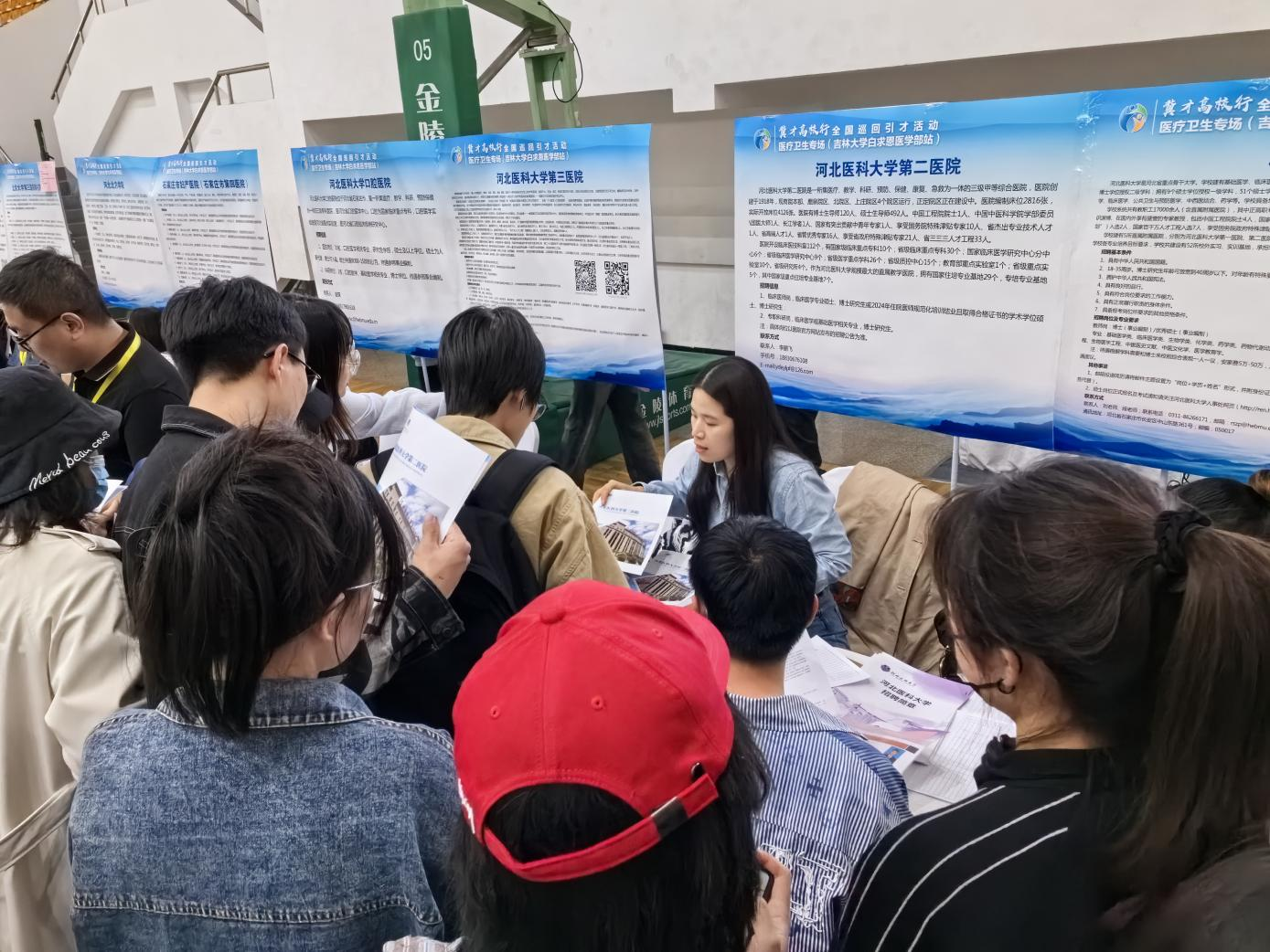5月8日至9日,河北省人社廳、省衛健委共同在哈爾濱醫科大學、吉林大學舉辦“冀才高校行”全國巡回引才醫療衛生專場活動,42家省內重點醫院、醫療衛生類用人單位組團赴外引才。