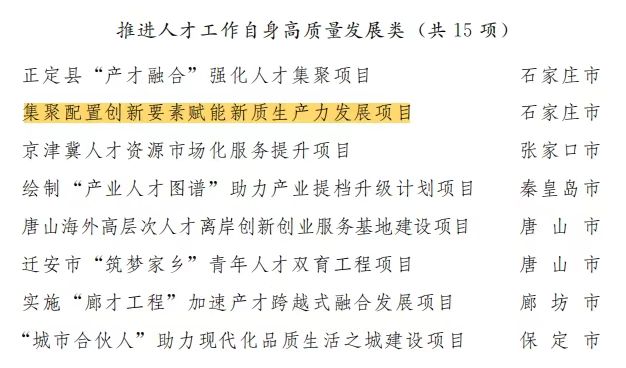 近日,河北省委人才工作領導小組辦公室發布《關于人才強冀工程2025年度重點人才項目立項的通知》,興冀人才公司申報的“集聚配置創新要素賦能新質生產力發展”項目獲得立項批復。